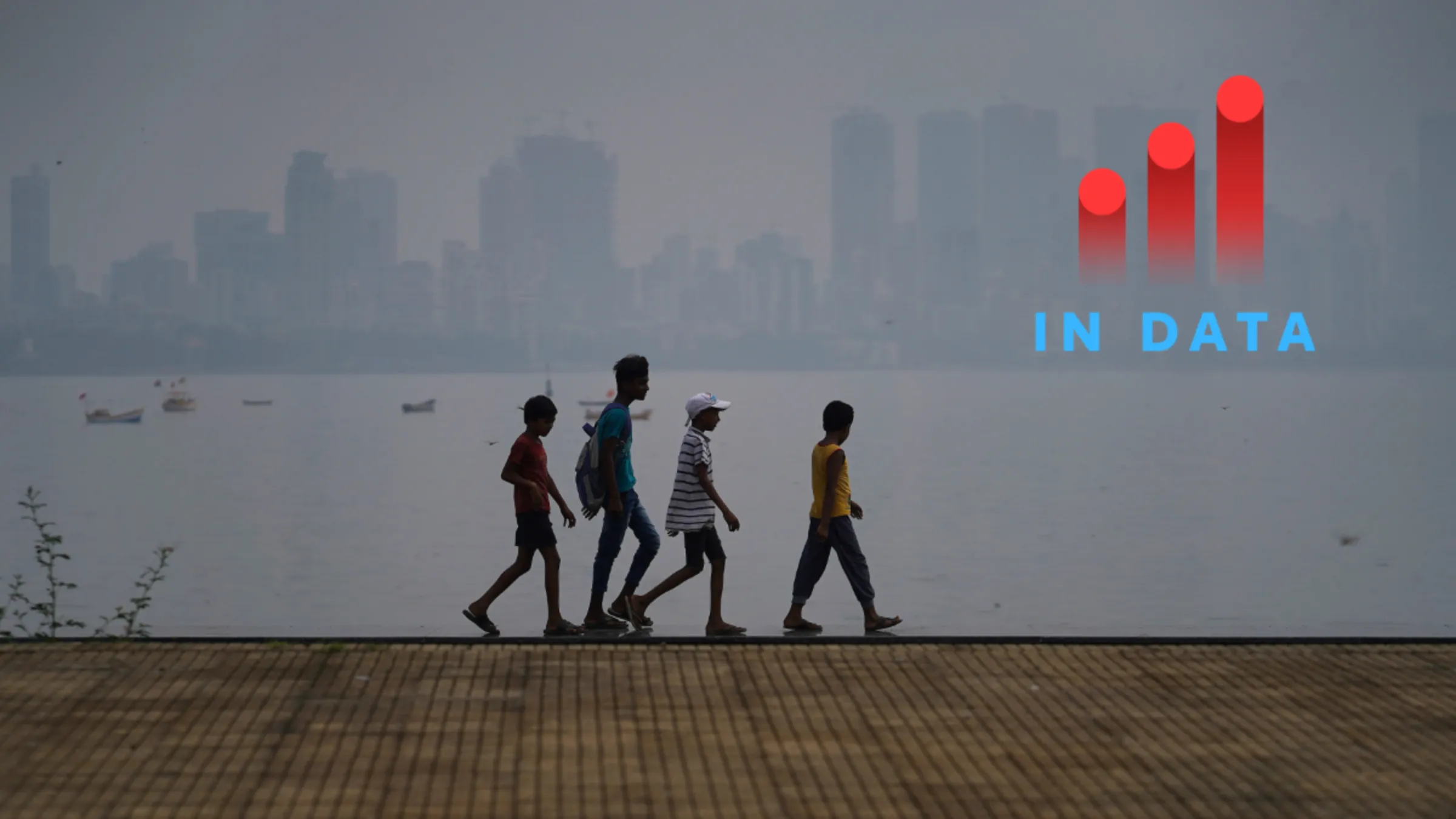 Boys walk on a promenade along the Arabian Sea as smog covers Mumbai skyline, India, September 19, 2019. REUTERS/Hemanshi Kamani